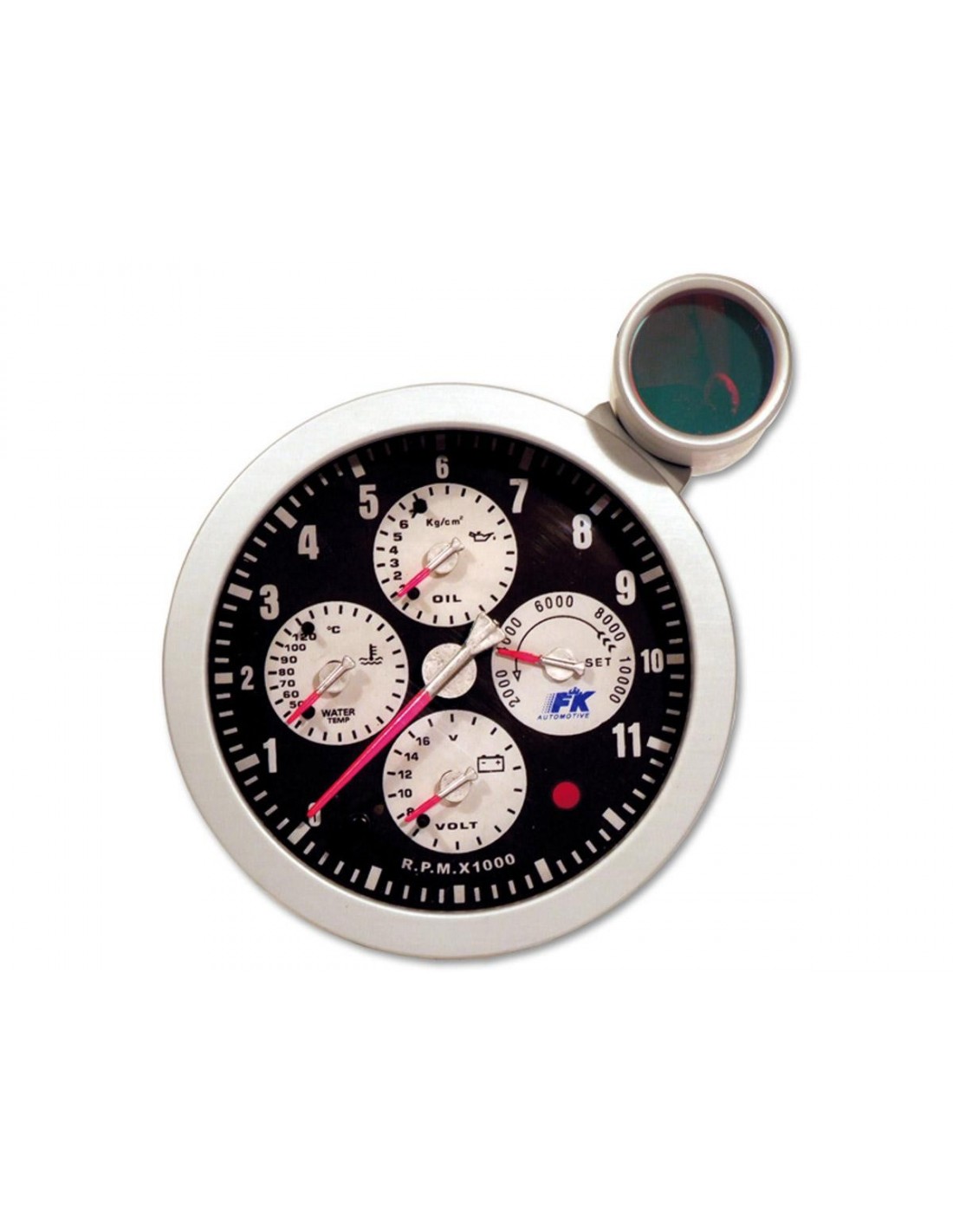 Diametro strumento 127mm, 4 strumenti in 1, illuminazione MULTICOLOR 7 colori, quadrante bianco, ghiera silver, con segnale fuorigiri, vetrino trasparente ed ALTA QUALITA'.
