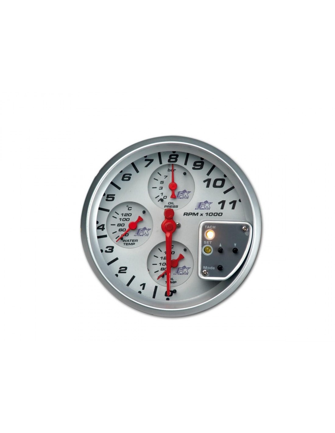 Diametro strumento 127mm, 4 strumenti in 1, illuminazione giallina, quadrante bianco, ghiera silver, con segnale fuorigiri, vetrino trasparente ed ALTA QUALITA'.