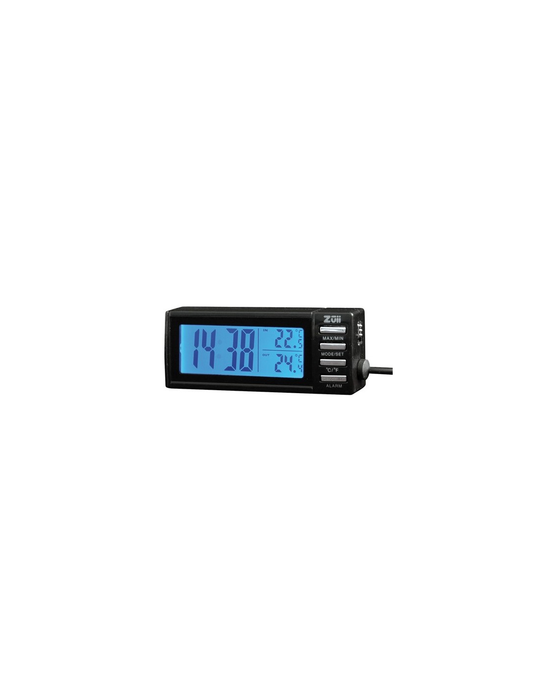Orologio digitale, sveglia e funzione richiamo sveglia (snooze), termometro da interno/esterno. Formato ore 12/24 interscambiabili, registrazione livelli minimi e massimi della temperatura. Display a batterie, retroilluminazione 12V.