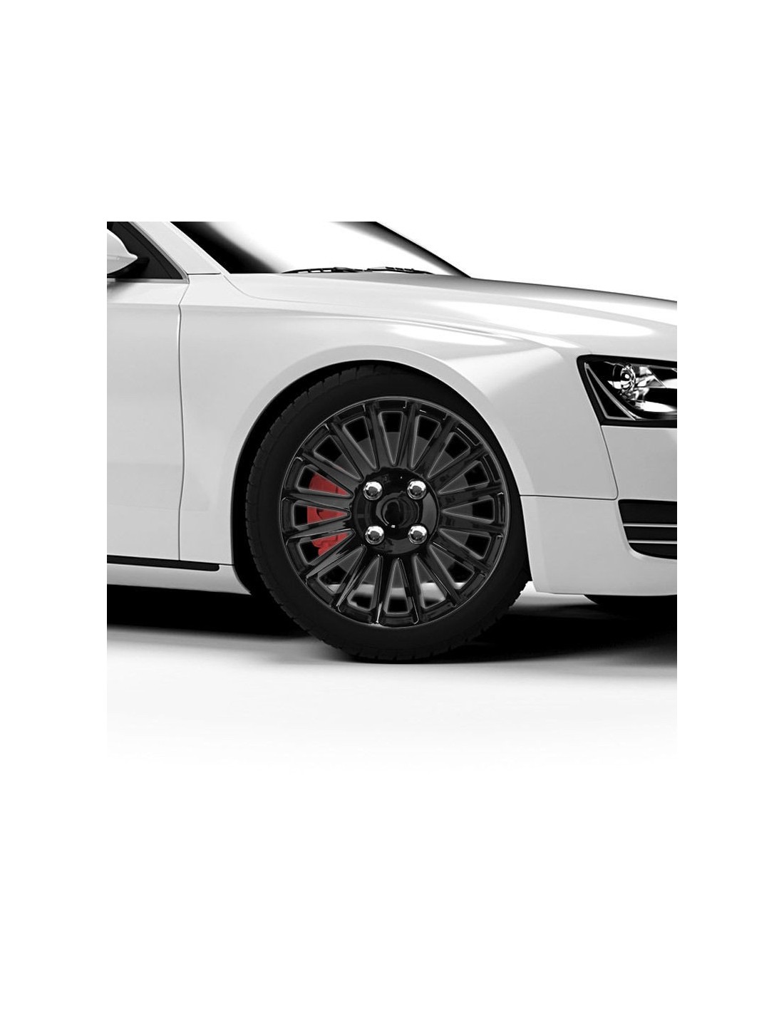 In materiale ABS di qualità, conosciuto per la sua stabilità, durezza, resistenza ma anche flessibilità, di facile montaggio. Resiste a graffi, urti e agenti atmosferici. Bulloni cromati. Anello in acciaio temperato per un'ottima presa sul cerchio. Resistenti alle temperature più estreme.