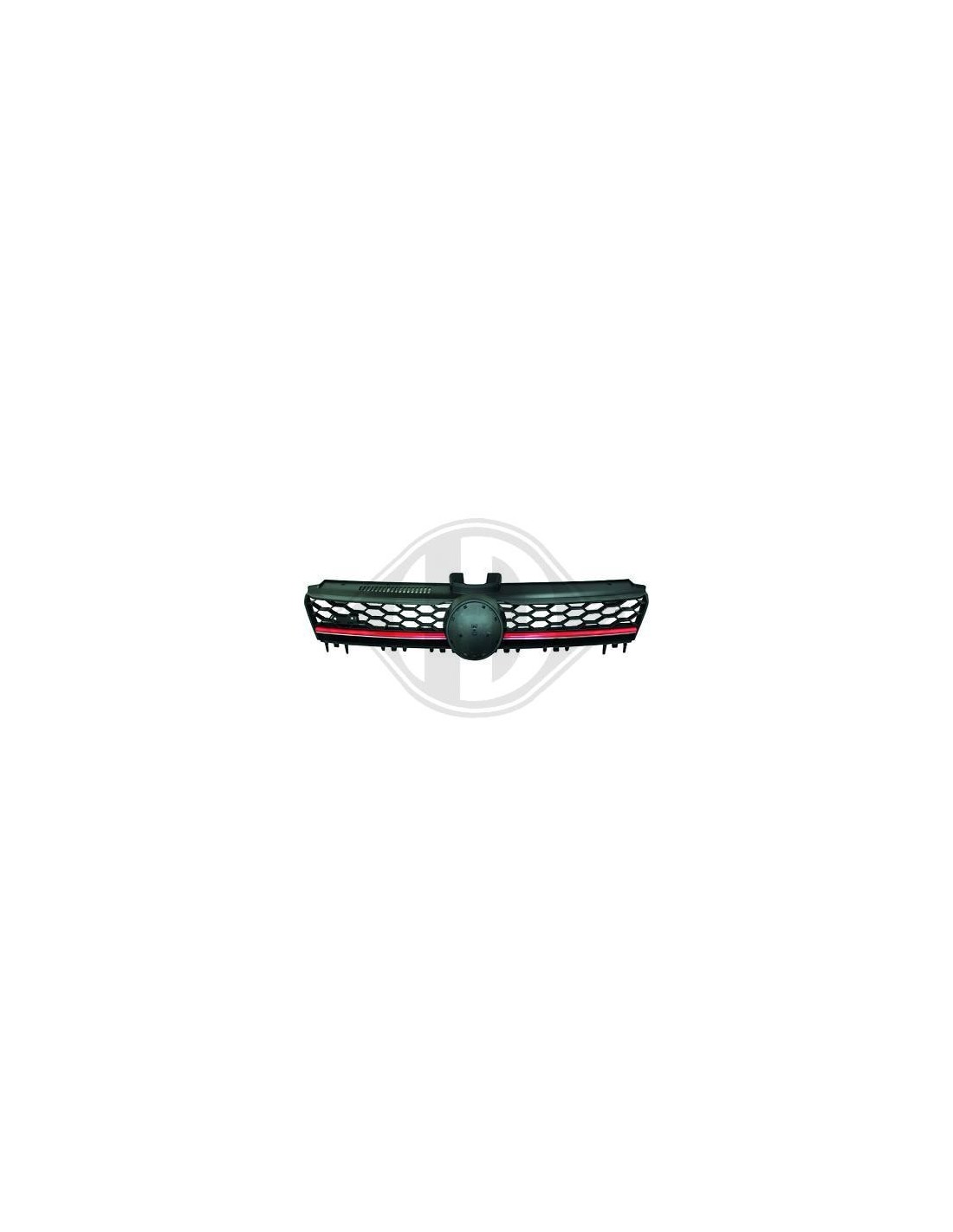 Calandra nera in ABS senza logo Volkswagen, specifica per VW Golf 7 dal 2012 ad oggi. Con striscia stile GTI.